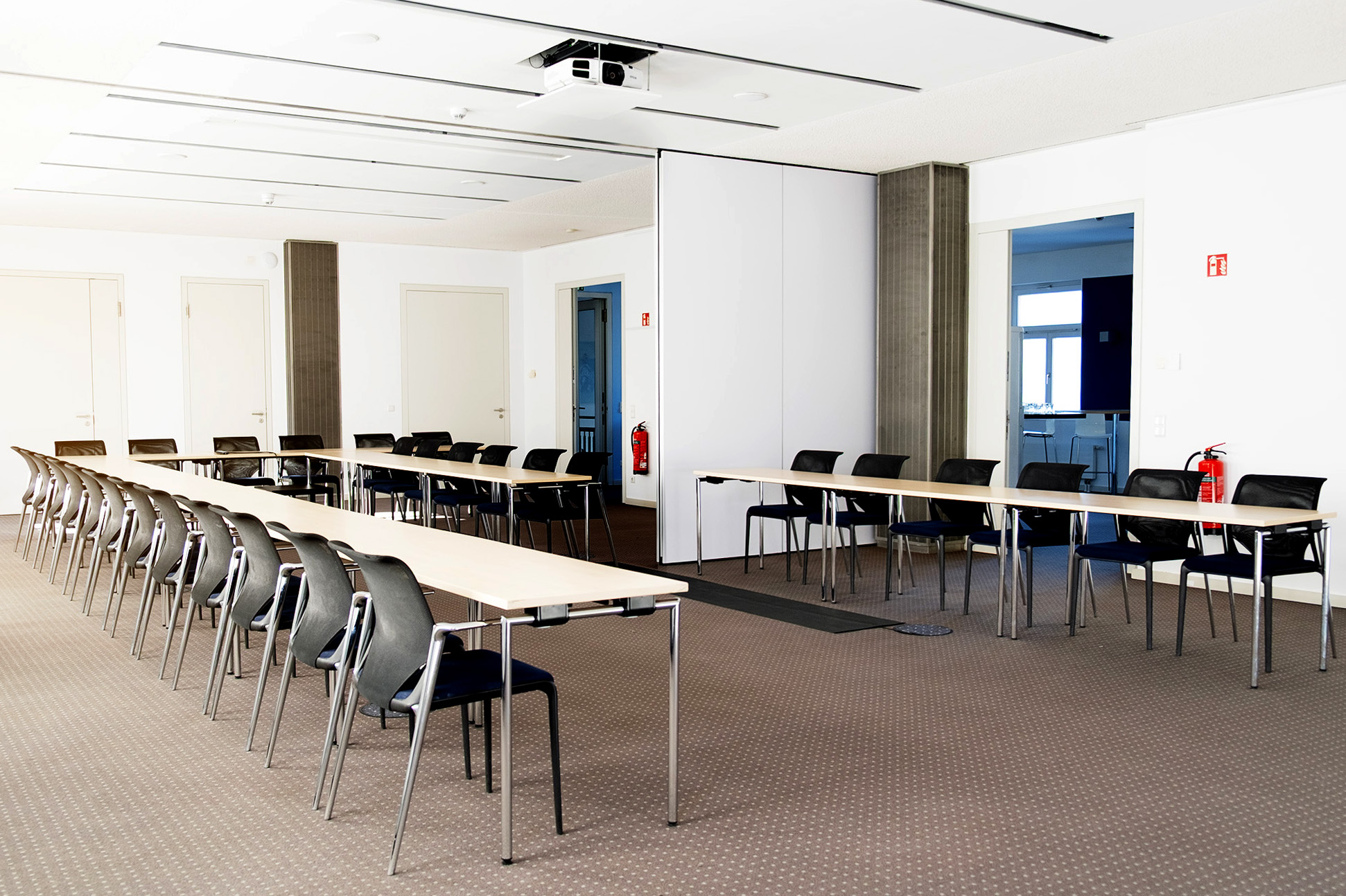 Der Saal II kann durch eine Trennwand geteilt werden und kann dann jeweils als Einzelraum genutzt werden.